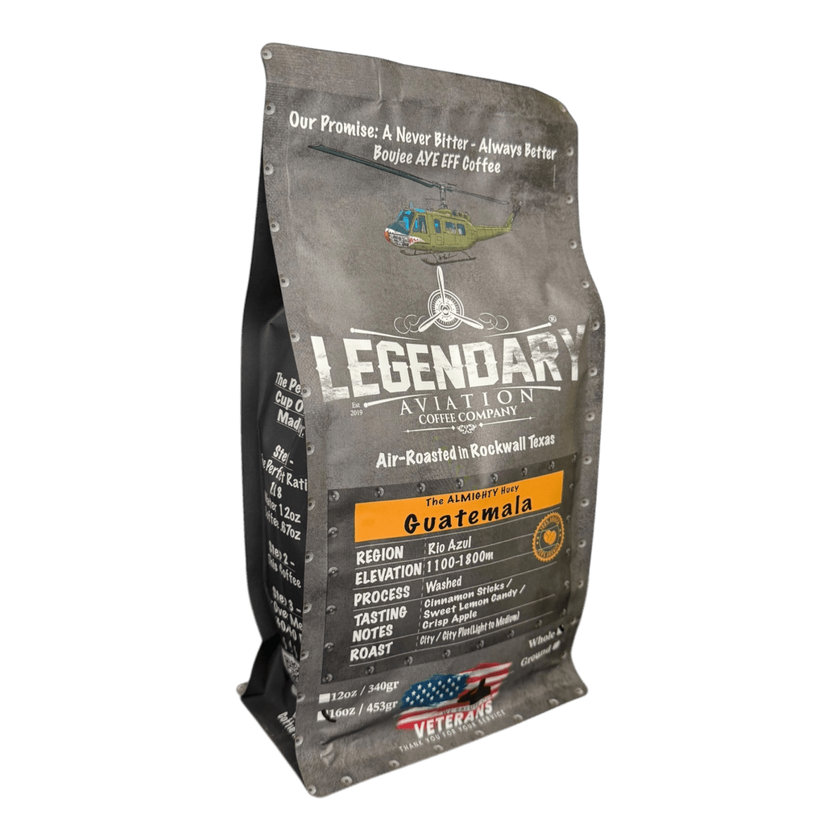 Introducing the ALMIGHTY Huey Guatemala Coffee from Legendary Aviation Coffee Company, a well-rounded roast that pays tribute to the legendary Huey helicopter. This exceptional coffee hails from the remote town of Jacaltenango in Guatemala’s Rio Azul region, crafted by the skilled farmers of Coop Rio Azul.