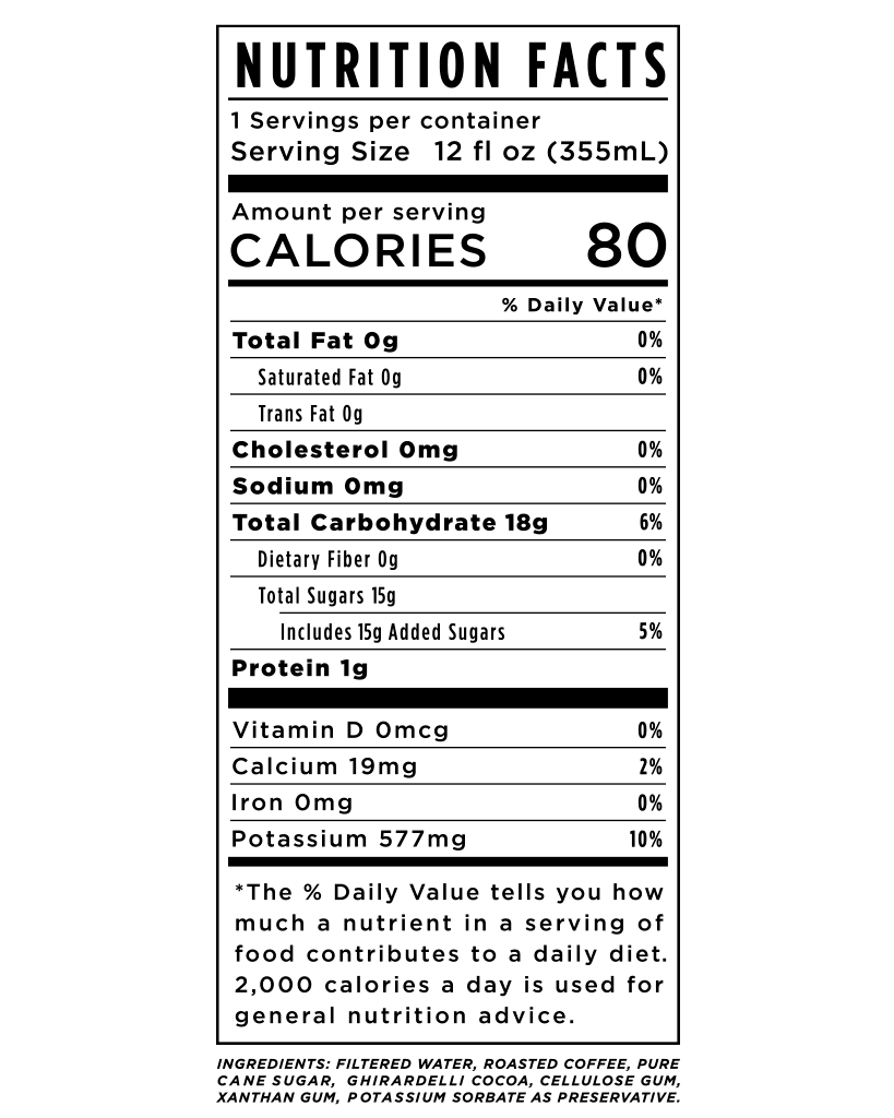 This Chocolate Cold Brew is highly caffeinated (326 mg worth) and absolutely delicious. Ditch the chemically laced energy drinks that are full of disgusting ingredients and let our Cold Brew give you the clean energy boost you need.