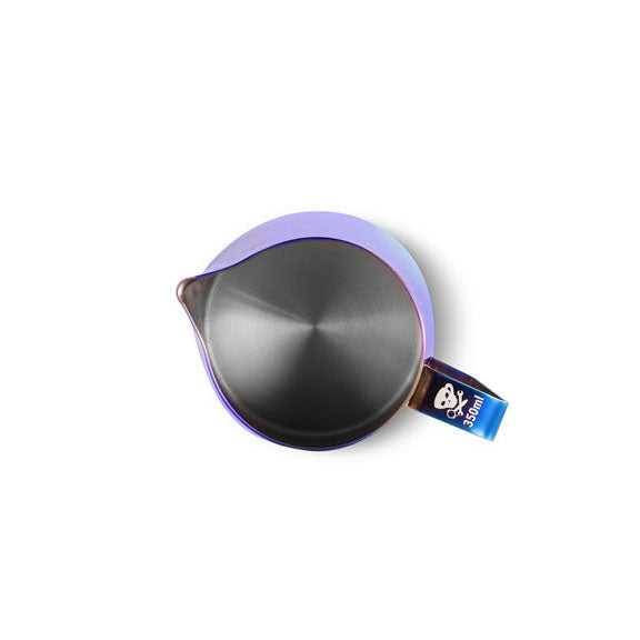 We designed this colored milk frothing pitcher to preserve your bar's coolness factor and also as a way to help you keep your milk options separated. This 12oz steaming pitcher is unmatched in quality and design and is made of 18/8 food-grade stainless steel with a 1.3 mm thickness to ensure milk temperature stability. It features a precision pour spout for latte art and a large handle that is double reinforced to offer both proper ergonomics and durability. Branded with the Espresso Parts Jolly Roger.