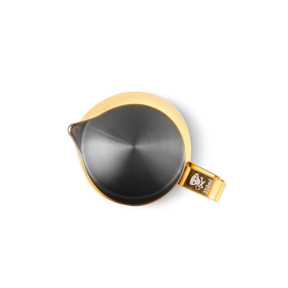 We designed this colored milk frothing pitcher to preserve your bar's coolness factor and also as a way to help you keep your milk options separated. This 12oz steaming pitcher is unmatched in quality and design and is made of 18/8 food-grade stainless steel with a 1.3 mm thickness to ensure milk temperature stability. It features a precision pour spout for latte art and a large handle that is double-reinforced to offer both proper ergonomics and durability. Branded with the Espresso Parts Jolly Roger.