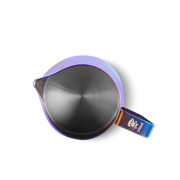 We designed this colored milk frothing pitcher to preserve your bar's coolness factor and also as a way to help you keep your milk options separated. This 20oz steaming pitcher is unmatched in quality and design and is made of 18/8 food-grade stainless steel with a 1.3 mm thickness to ensure milk temperature stability. It features a precision pour spout for latte art and a large handle that is double-reinforced to offer both proper ergonomics and durability. Branded with the Espresso Parts Jolly Roger.