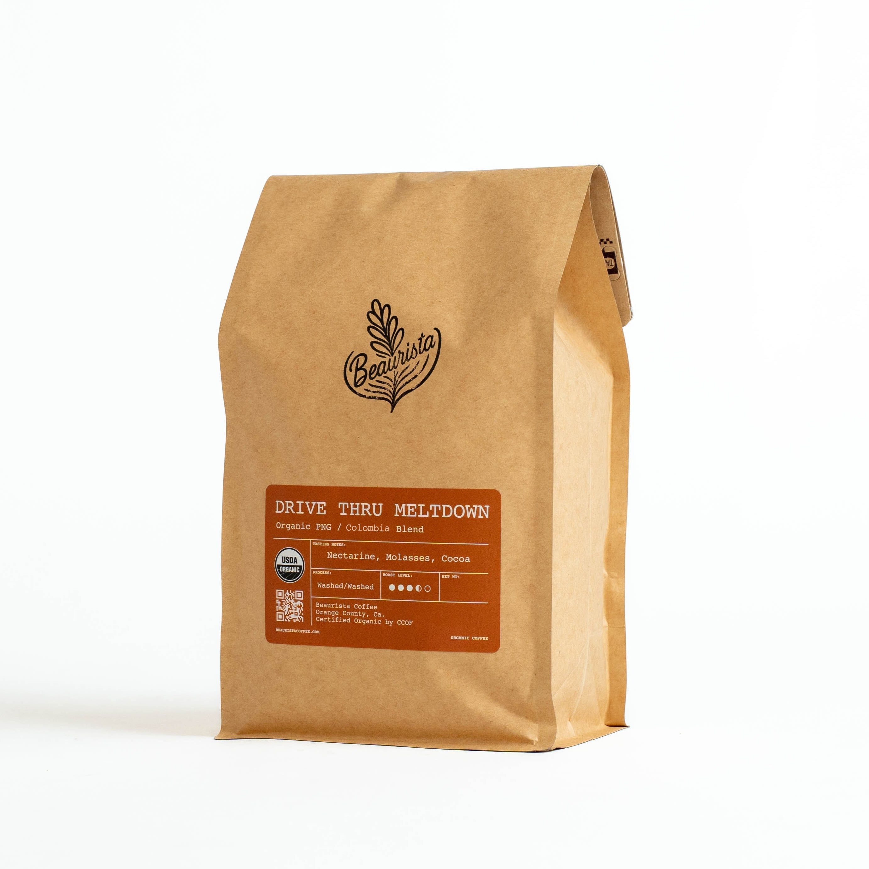 Drive-Thru Meltdown is a tribute to that turning point—the moment you realize that once you know what great coffee is supposed to taste like, you just can’t settle. This Organic Papua New Guinea & Colombia blend is for coffee lovers who know exactly what they want—and aren’t afraid to drive away if it’s not done right.
