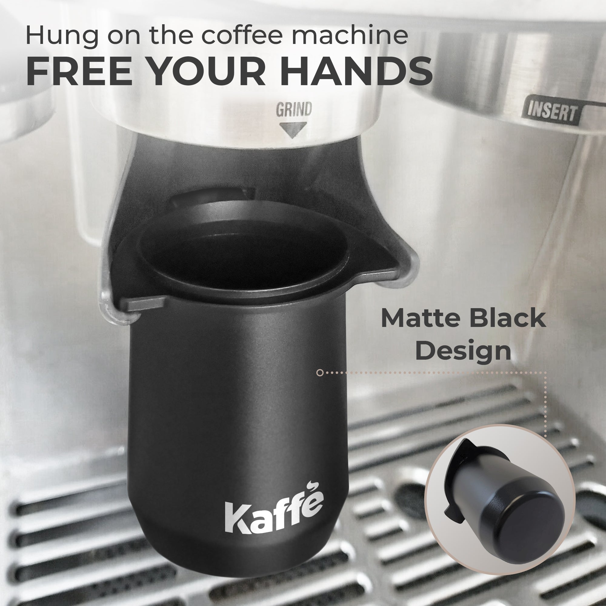 - SUPERIOR DESIGN - Kaffe's Coffee dosing cup is made of premium brushed stainless steel, sturdy enough for long-term and repeated use. Its large capacity is perfect for one or two cups of espresso grounds.