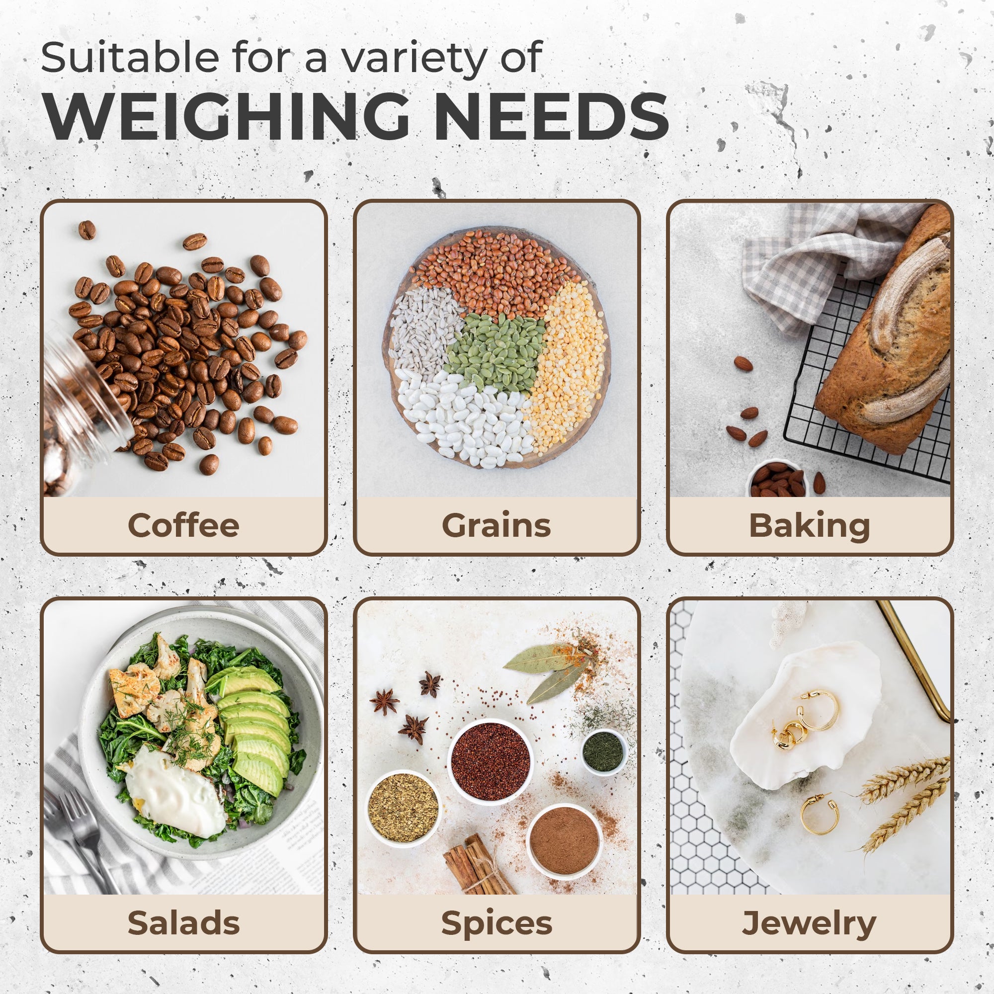 - PRECISION AND ACCURACY: Eliminate the guesswork when preparing a dietary meal, preparing baby food and baking. Kaffe's Digital Food Scale allows you to weigh food, spices and baking ingredients in ounces, pounds , grams, millileters, and fluid Ounces. Perfect for your KETO Diets and Health consious individuals.