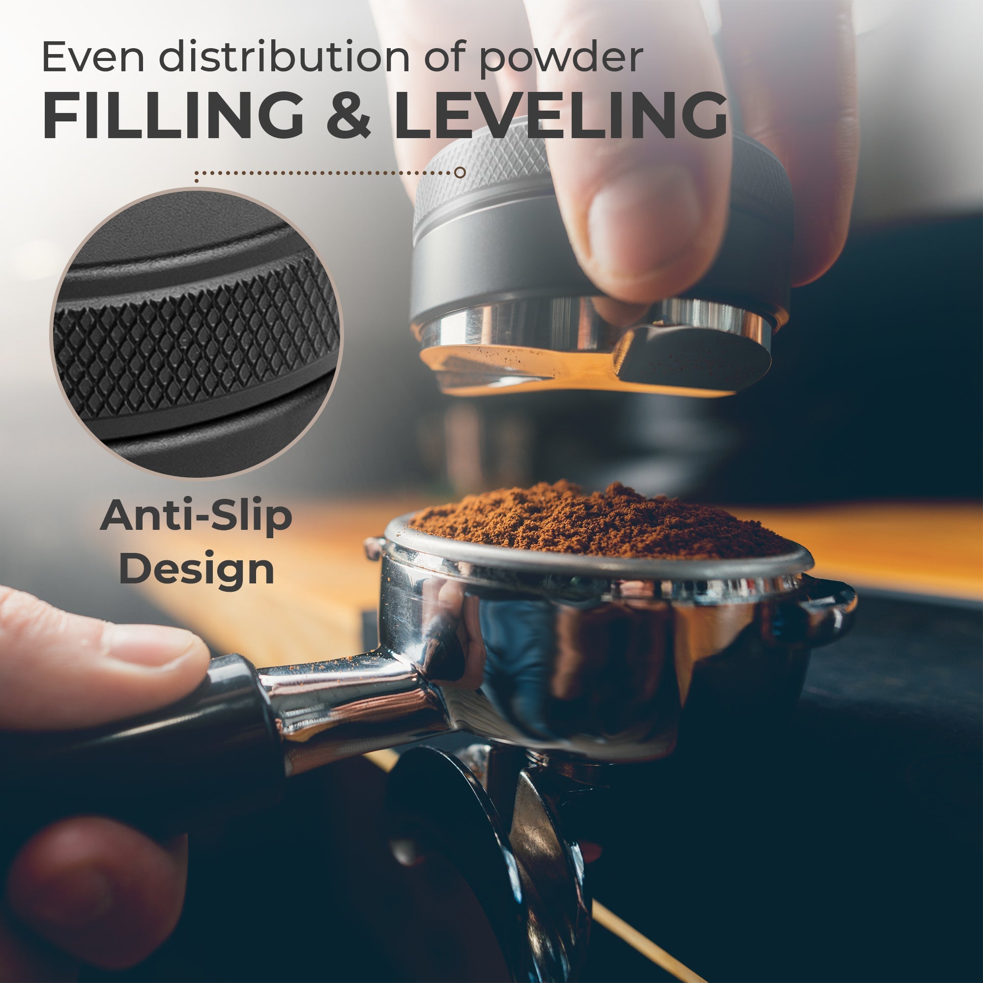 - EASY USE - Stir the coffee grounds while they sit in the portafilter. A funnel placed above the portafilter helps prevent spills. The stirring action breaks up any clumps, and evens out the density of coffee within the puck which results in reduced channelling, and higher, more even extractions.