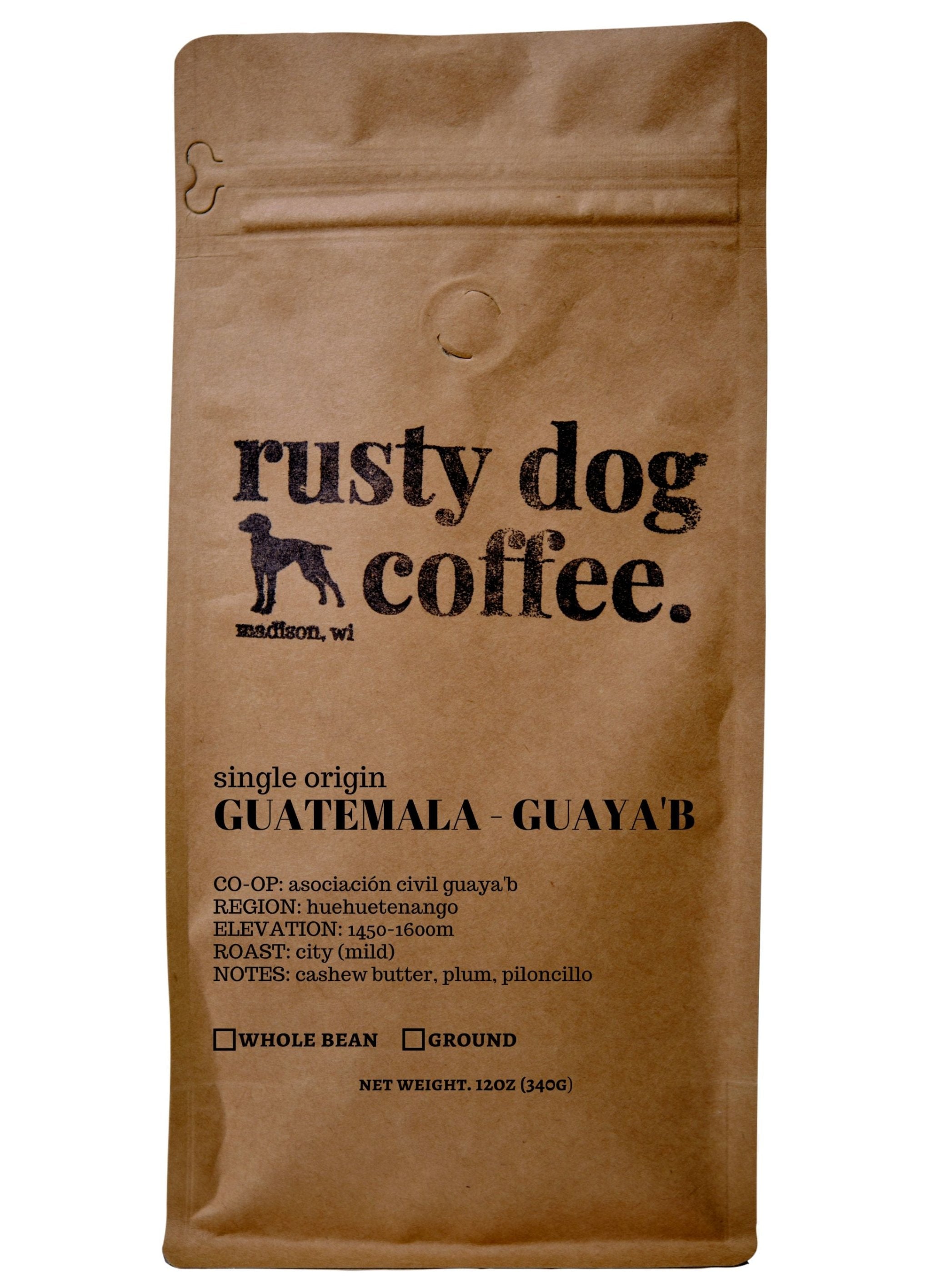 Product descriptions are provided by Rusty Dog Coffee.