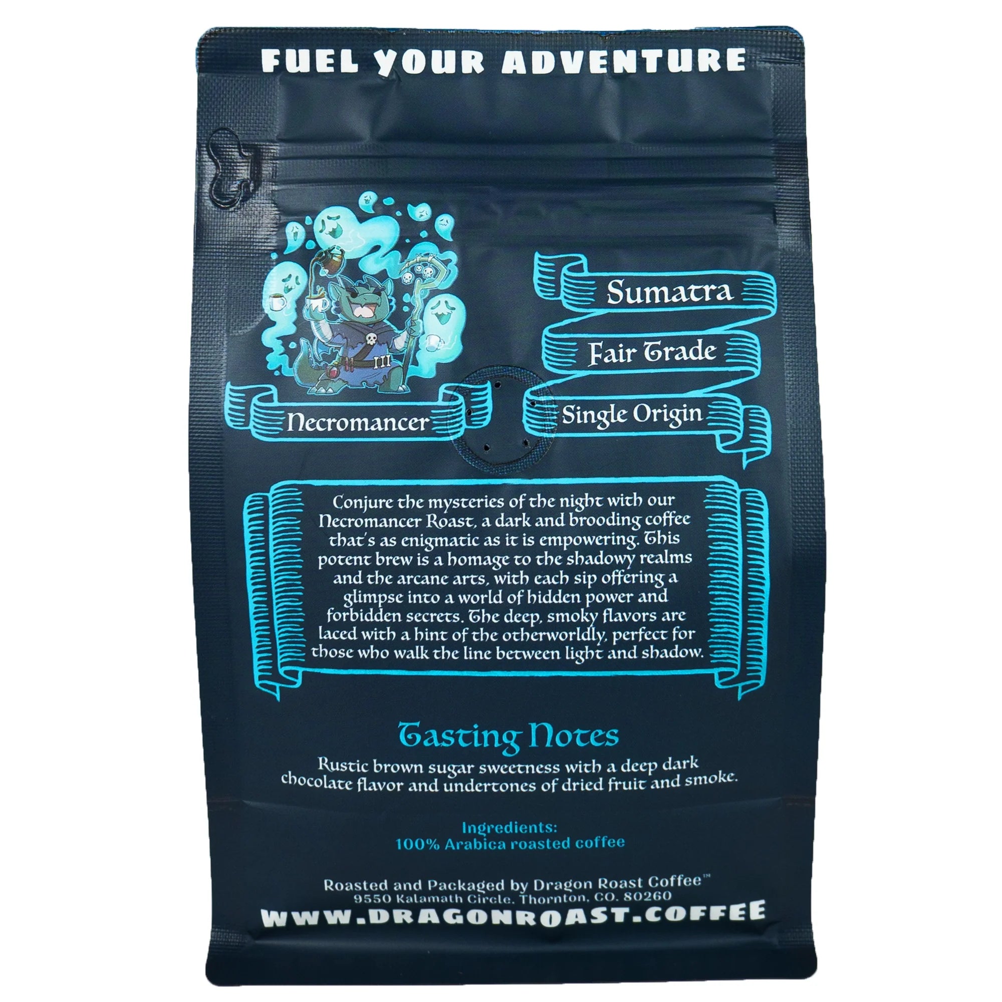 The deep, smoky flavors are laced with a hint of the otherworldly, perfect for those who walk the line between light and shadow. Whether you're delving into ancient tomes or plotting your next grand strategy, let the Necromancer Roast be your loyal familiar. Awaken your senses and embrace the dark magic that bubbles in every cup – a sorcerer's dream in liquid form. Grab a bag today, if you dare to dabble in the dark arts.