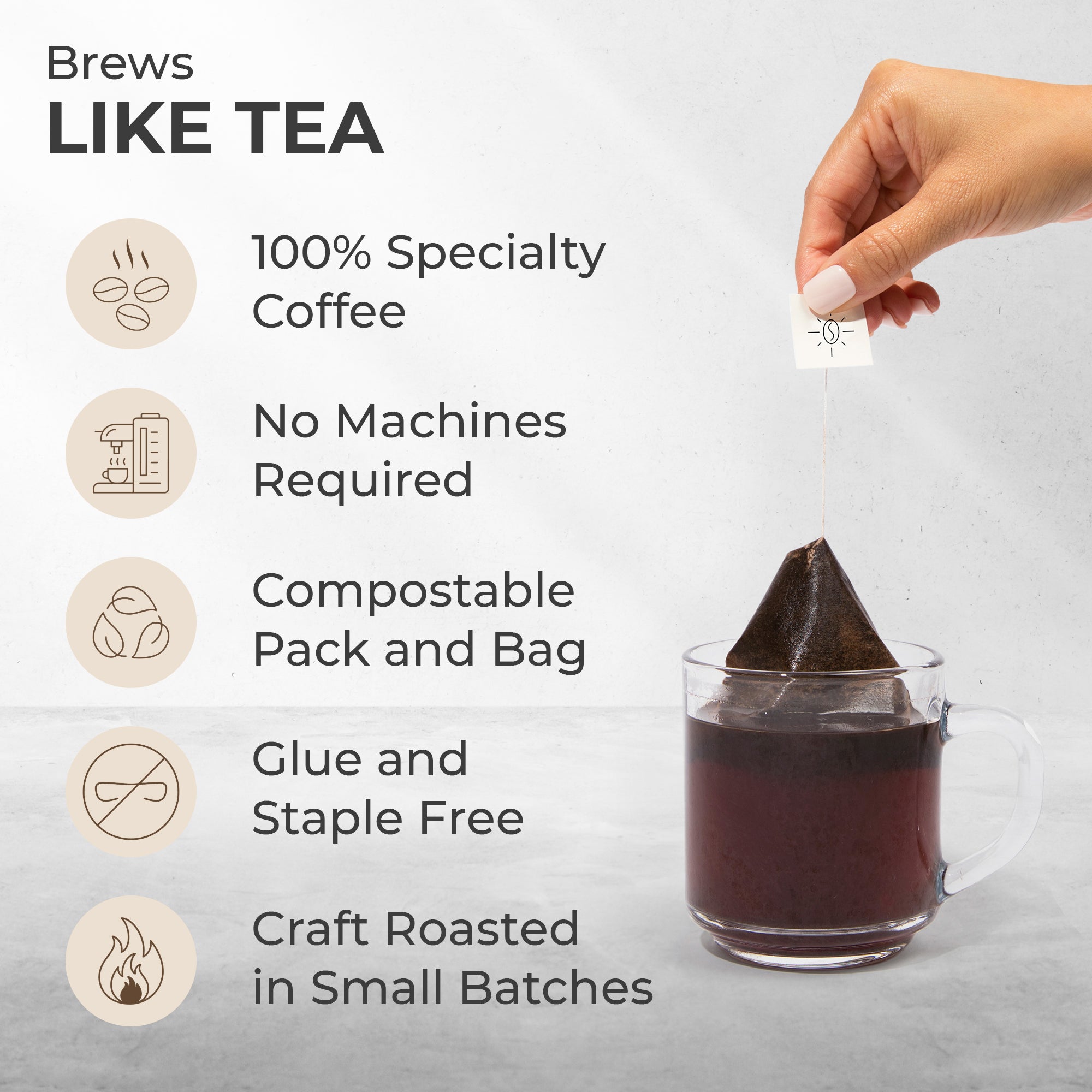 Steeped Method: Specialty coffee brewed like tea in fully sustainable single-serve brew bags for the perfect cup of coffee anytime, anywhere.