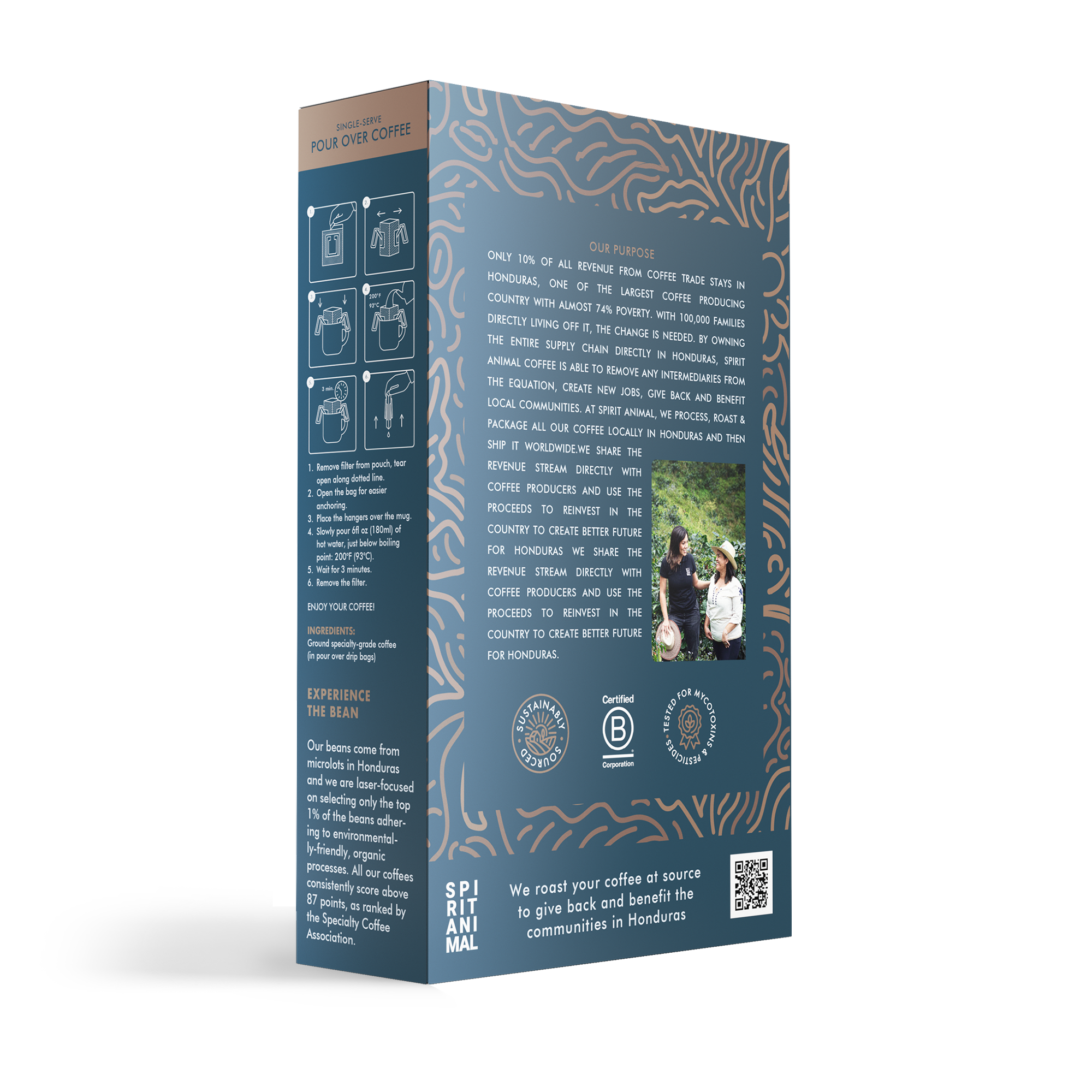 Whether you're traveling, camping, or want to enjoy your favorite coffee at work, our pour-over drip bags make it easy to have premium coffee whenever and wherever. Just add hot water and unleash your spirit animal.