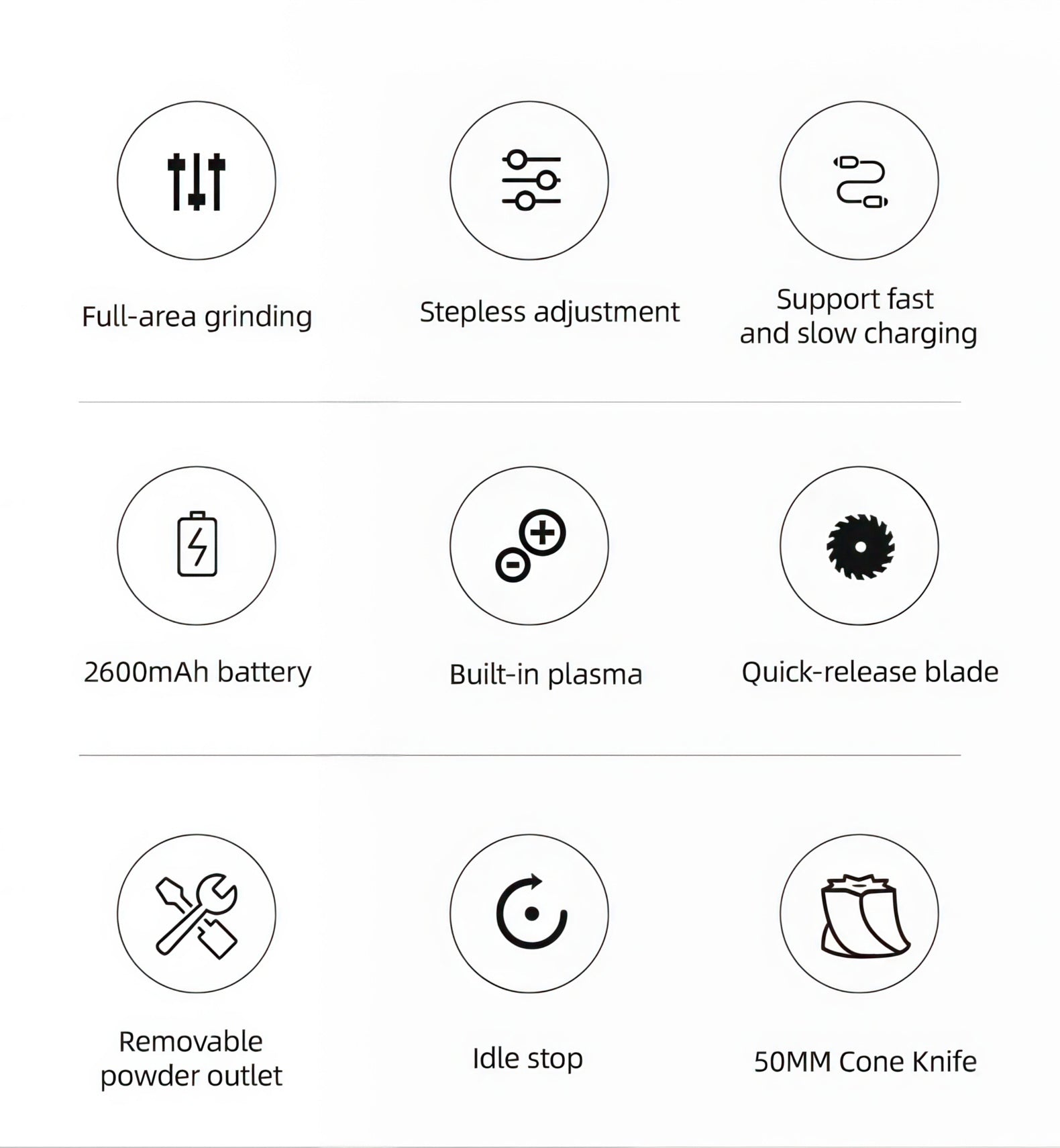 Quick-Release Burr System: Tool-free burr removal in seconds for fast and effortless cleaning.