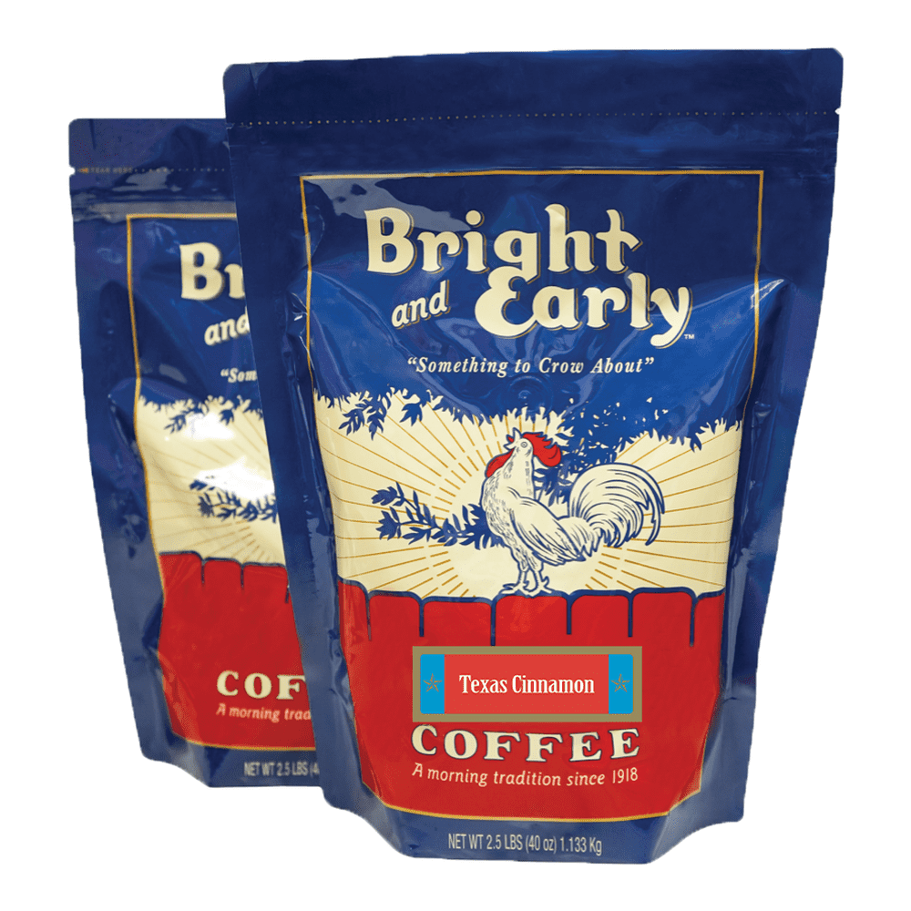 Brew a fresh cup of our Texas Cinnamon coffee for a pleasantly spiced flavored coffee. In Texas, we don’t skimp on flavor. This especially holds true for coffee drinkers. Bright and Early Coffee, a tried and true Texas company for almost a century, offers a coffee featuring notes of freshly ground cinnamon for an unforgettable taste. For an extra touch, try topping with your favorite whipped cream! Our Texas Cinnamon coffee is available in regular or decaf, and in various sizes depending on your preference. Furthermore, choose the grind according to your method of preparation, whether it’s with an automatic drip machine, a French press, etc. Shop today and enjoy a taste of Texas!