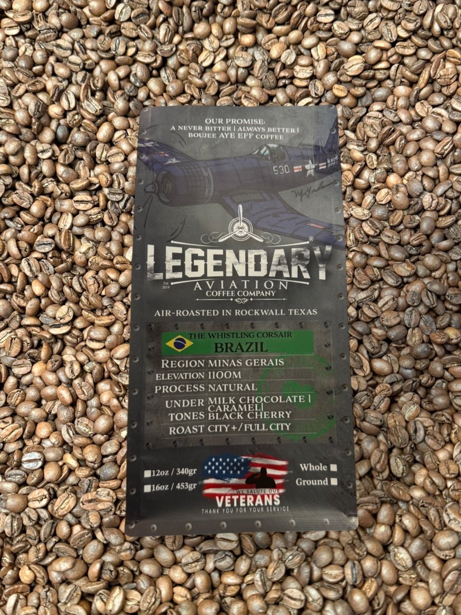 Introducing the Whistling Corsair from Brazil by Legendary Aviation Coffee Company, inspired by the legendary F4U Corsair and sourced from the exceptional micro-regions of Minas Gerais, Brazil. This coffee is a tribute to small-scale farmers and their dedication to producing extraordinary, specialty-grade coffee.