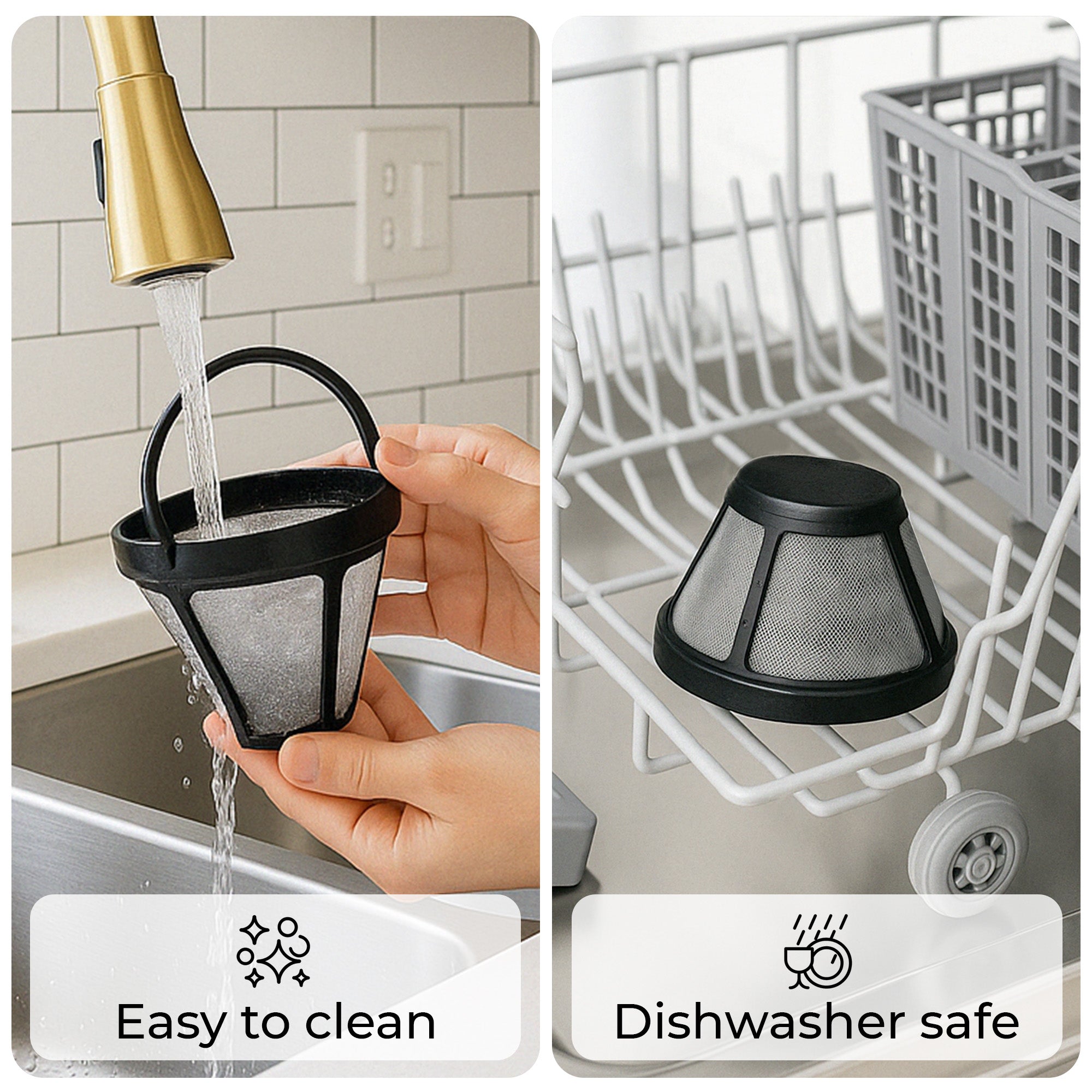 Compatible with most coffee maker brands, this easy-to-clean filter is dishwasher-safe and features a sturdy handle for effortless use. Say goodbye to wasteful paper filters and enjoy a cost-effective, sustainable way to brew your perfect cup every time.